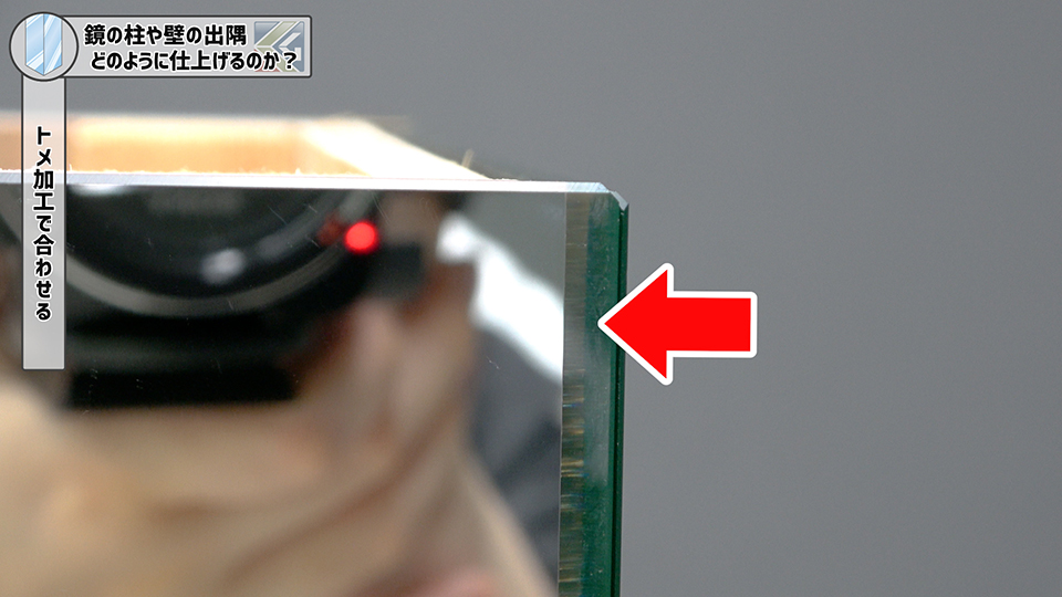鏡を建物の柱の全面に取り付ける際や、L型になっている壁の全面に取り付ける際に、柱や壁の角の部分…いわゆる