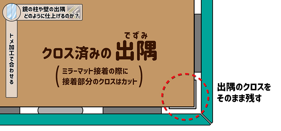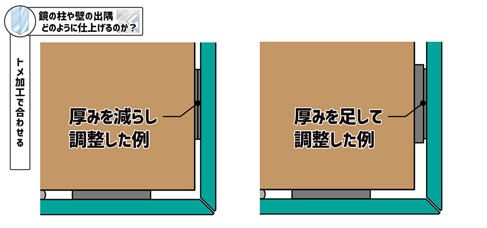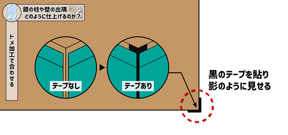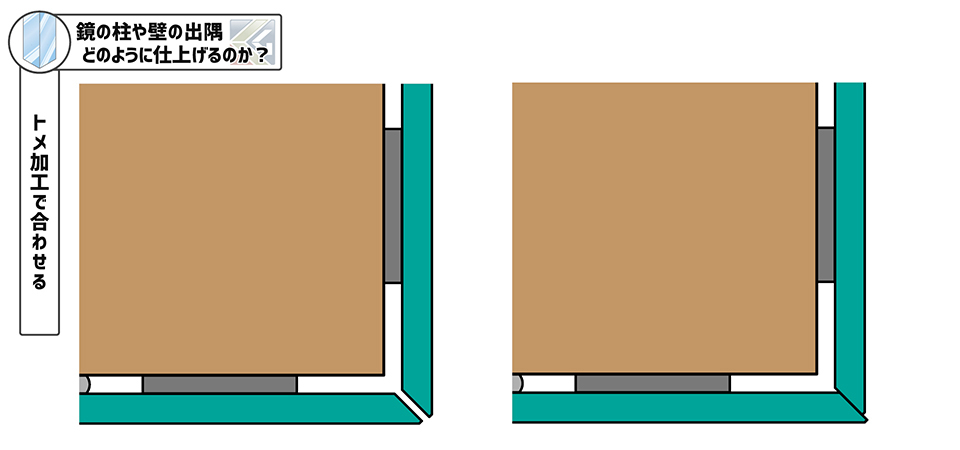 鏡の柱や壁の出隅の仕上げ方 基本の4パターンを解説