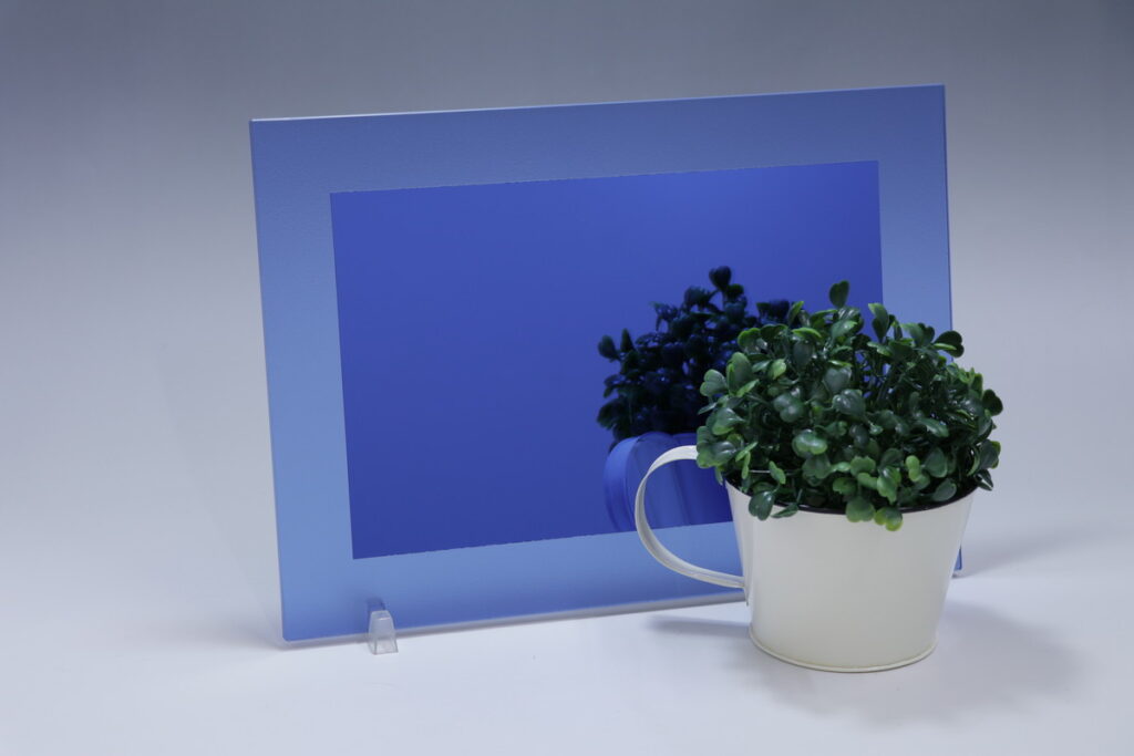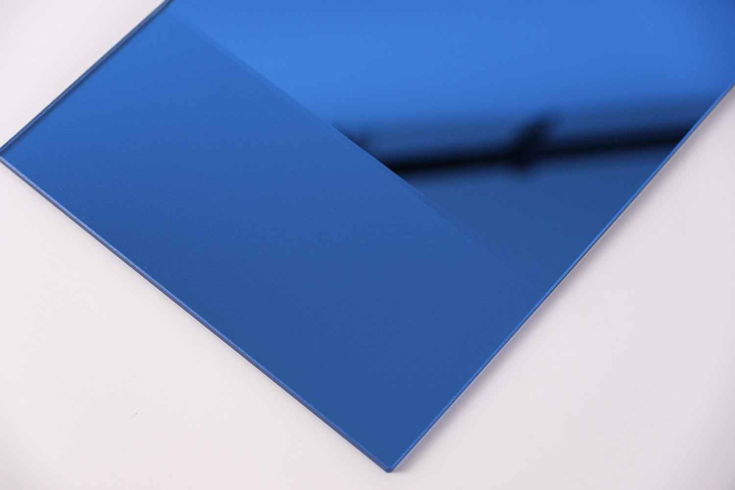 ディープブルーミラーは一般的な青色ミラーよりもやや深みがあり、濃い青い色のガラスミラーです。