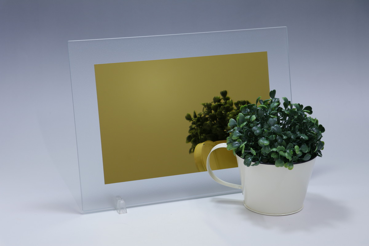 フロートガラスをゴールドイエローミラーに加工しています。