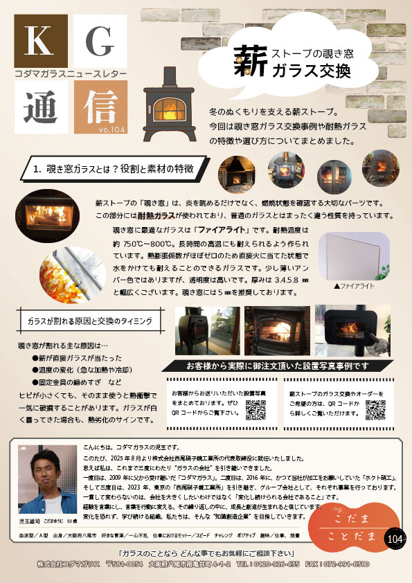今回のお客様の設置写真は、薪ストーブの覗き窓用ガラスを新しく交換されました。