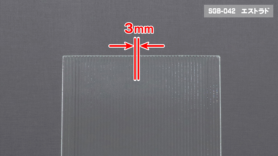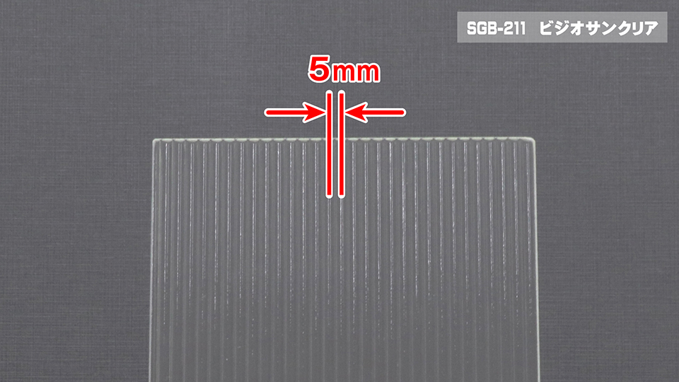 3mmピッチで模様が入るエストラドと比べると、ビジオサンクリアは5mm間隔と少し広めのピッチで模様が入っています。