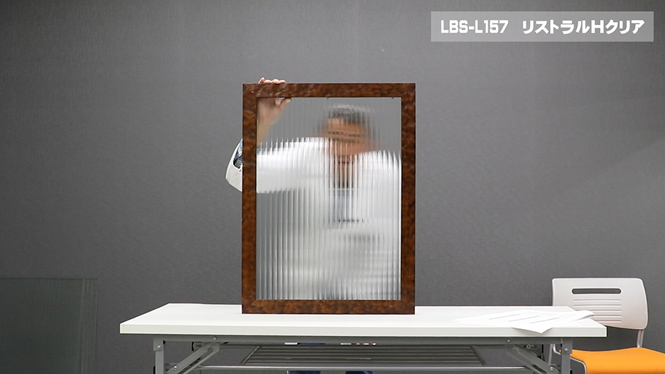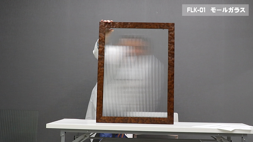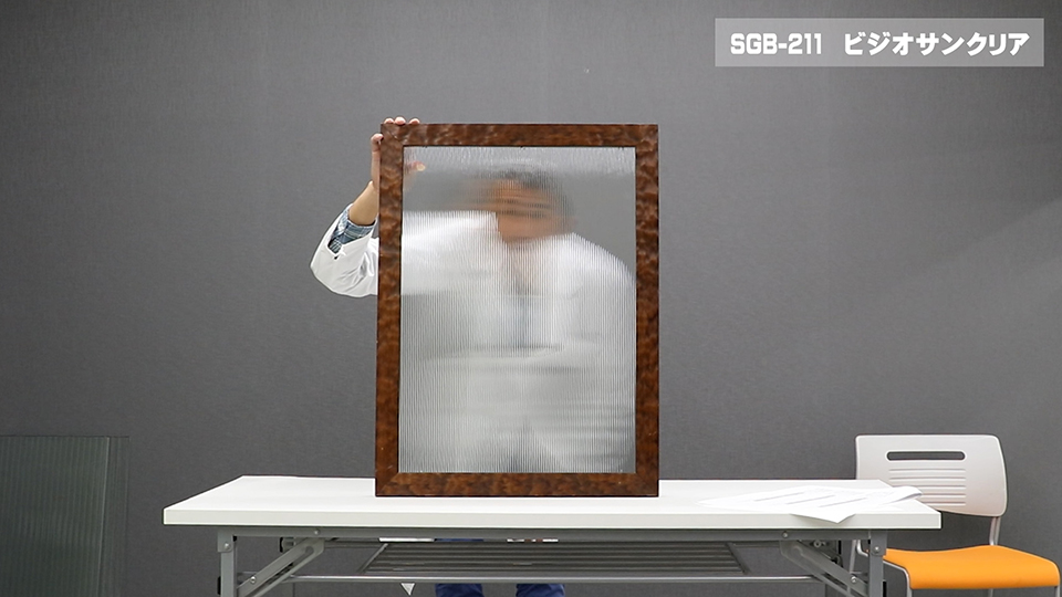 弊社代表がガラスの向こう側に立ち、少し離れた状態から近づいたときの見え方の違いなどを見比べていきます。