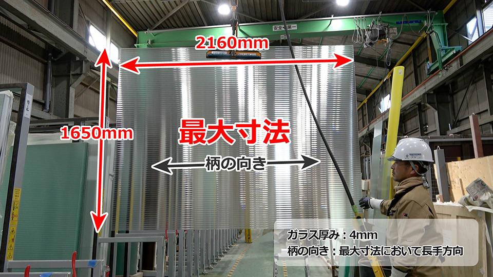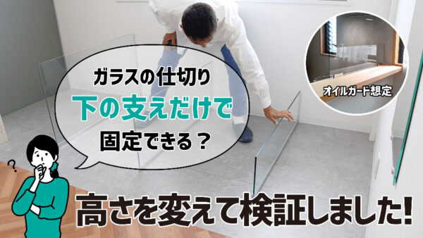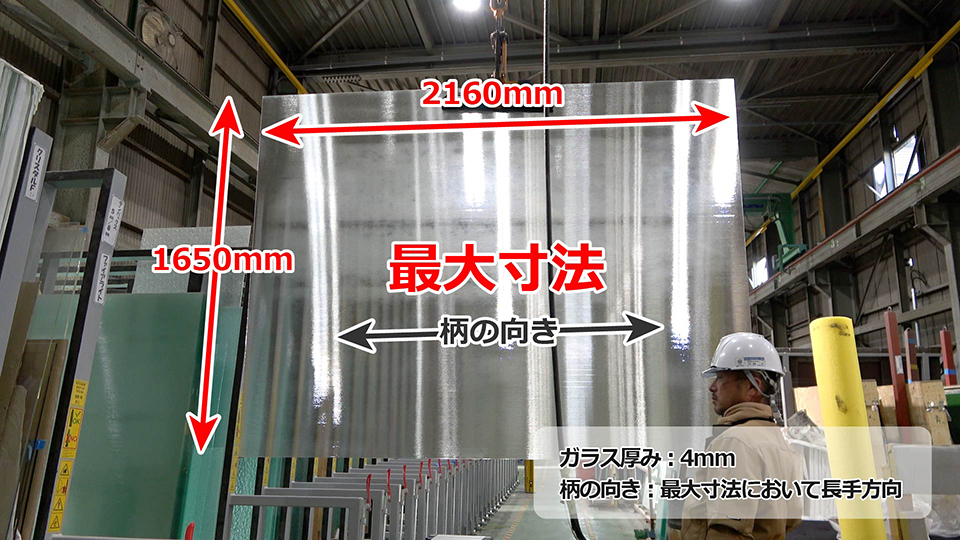今回紹介したガラスの厚みすべて4ミリ、ガラスとガラスを樹脂で接着して厚みを増す「合わせ加工」を施すことで大きいサイズでも使用可能に