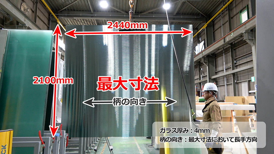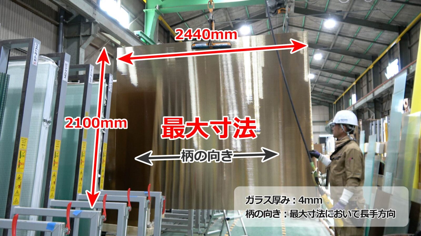 模様の間隔は12mm程度となっており、最大寸法は1830mm×2440mm、厚みは4mmです。