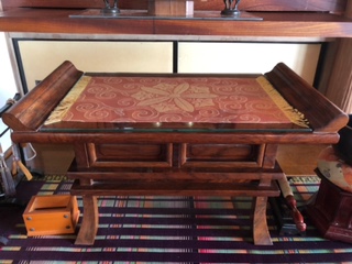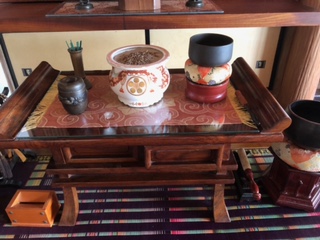 お仏壇前に置く木製の供物台に強化ガラスの天板を置かれたお客様(佐賀県K様)