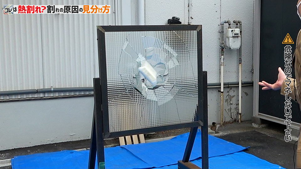 熱割れが起こりやすい、金属ワイヤーが入った網入りガラスや線入りガラスを用意して実際に熱割れを起こして検証してみました。