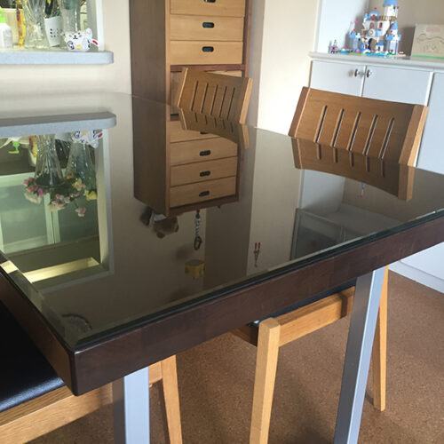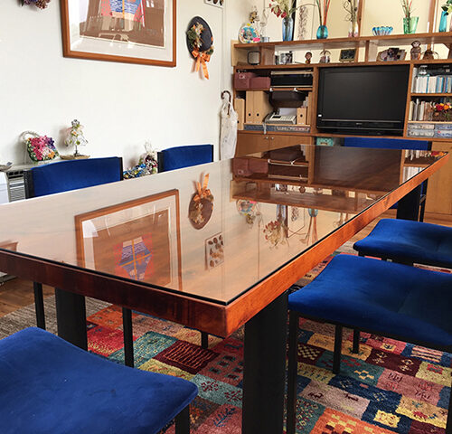 木製のテーブルの上に強化ガラスを置かれたお客様(兵庫県神戸市 M様)...
