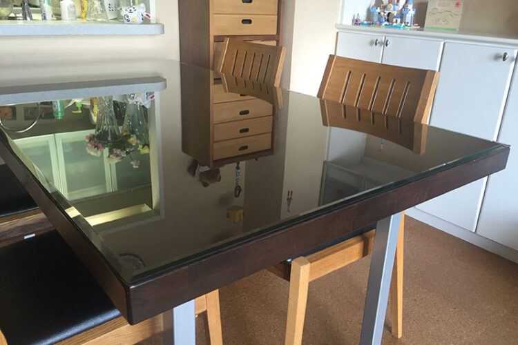 こんにちは!株式会社コダマガラスの児玉です。 弊社ではさまざまなガラス・ミラーを取り扱っています。 弊社ではテーブルトップに置くガラスをご検討中のお客様へ、厚み5mmもしくは6mmの強化フロートガラスをご案内しています。 ただし、長辺が1,800mmを超えるような場合は厚み6mmをおすすめしています。 これは、平らな状態でガラ